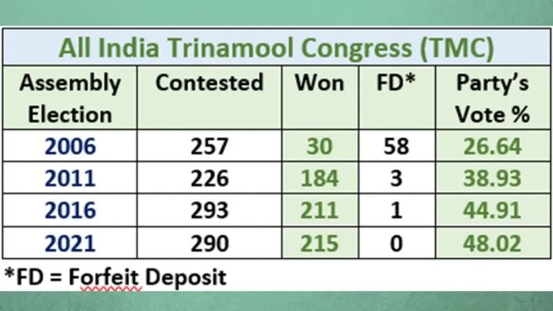 शतरंज की बिसात पर ममता की चतुराई भरी चाल आंकड़ों में स्पष्ट है. पश्चिम बंगाल विधान सभा चुनाव- 2011 में टीएमसी को 184 सीटें, वामपंथी 62 पर ठहर गए. 2016 में 211 सीटें, भाजपा को 3, वाम को 32 सीटें मिली थीं. 2021 में 213 सीटें हासिल कीं. इसी तरह लोकसभा में भी मजबूती बरकरार रखी. 2019 में 42 में से टीएमसी को 22, भाजपा को 18, कांग्रेस को 2 सीटें मिली थीं. 2024 में टीएमसी 29 पर पहुँची, भाजपा 12 पर सिमटी, कांग्रेस को 1 सीट मिली. 11 दिसंबर 2019 के नागरिकता संशोधन अधिनियम (सीएए) को अल्पसंख्यक-विरोधी बताकर ममता ने एमजीएनआरईजीए, पीएमआवास जैसे फंड रोकने का मुद्दा गढ़ा. भाजपा को 'बाहरी' कहकर बंगाली अस्मिता जगाकर सत्ता में आई.