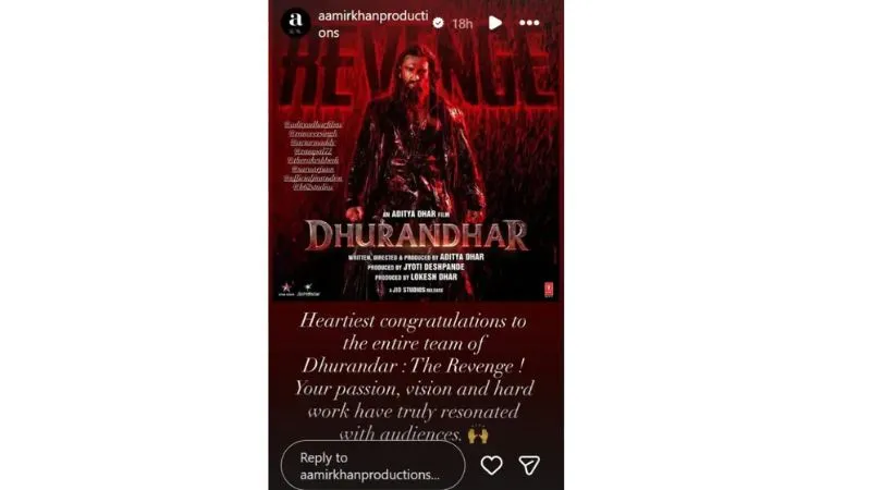 आमिर खान ने भी आखिरकार धुरंधर द रिवेंज देख ली है. एक्टर ने फिल्म देखने के बाद टीम को उनकी शानदार सफलता पर बधाई दी है, साथ ही उनकी कड़ी मेहनत और क्रिएटिव सोच की भी तारीफ़ की है.