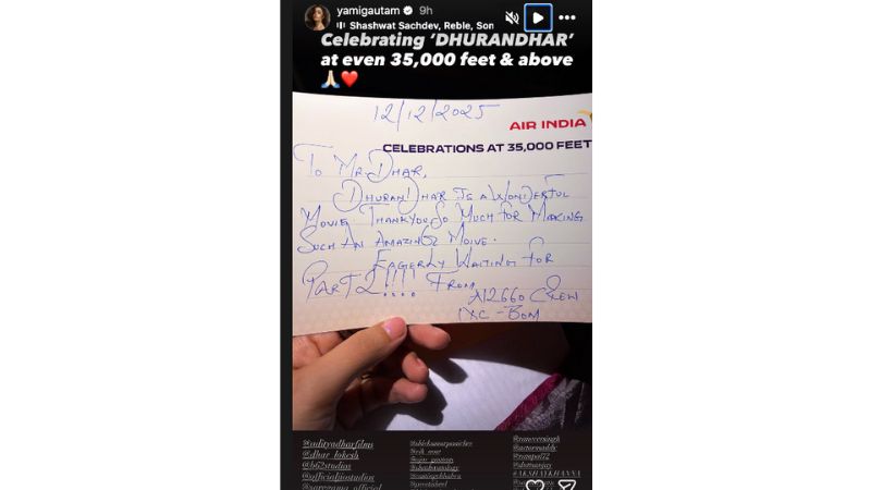 Dhurandhar को मिला एयर इंडिया से खास प्यार, '35,000 फीट की ऊंचाई पर 'धुरंधर' का जश्न! यामी गौतम ने दिखाई झलक