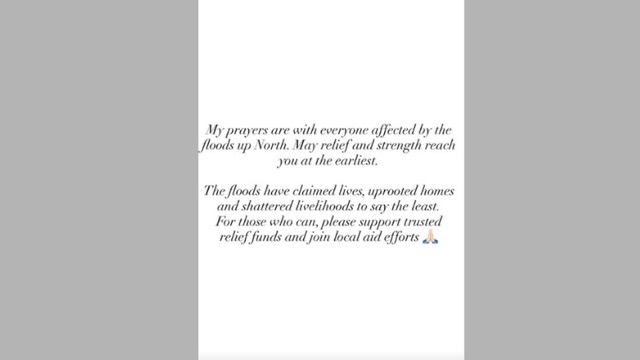 उन्होंने आगे लिखा, "हम जो कर सकते हैं, कर रहे हैं. हर योगदान, चाहे कितना भी छोटा क्यों न हो, बहुत बड़ा बदलाव लाता है. अपनी इंस्टा स्टोरी में मैंने कुछ जानी-मानी संस्थाओं के बारे में बताया है जो जमीनी स्तर पर अथक परिश्रम कर रही हैं. आप भी हो सके तो हर संभव तरीके से उनका साथ देने की कोशिश करें. साथ मिलकर हम बहुत से लोगों की जिंदगी का पुनर्निर्माण कर सकते हैं. साथ मिलकर हम पंजाब में उम्मीद की किरण जगा सकते हैं.”