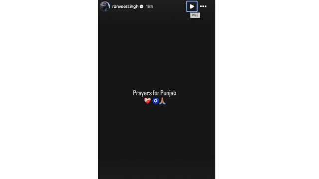 रणवीर सिंह ने इंस्टाग्राम स्टोरी पर लिखा, "Prayers For Punjab"