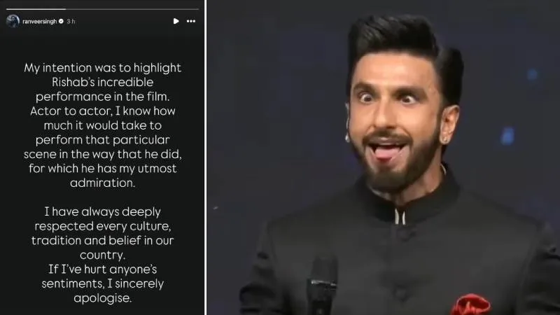 विवाद बढ़ता देख रणवीर सिंह ने सोमवार को इंस्टाग्राम स्टोरीज पर सफाई दी और माफी मांगते हुए लिखा, “मेरा मकसद फिल्म में ऋषभ की जबरदस्त परफॉर्मेंस को हाईलाइट करना था. हर एक्टर को पता है कि उस खास सीन को उस तरह से करने में कितना समय लगेगा जैसा उन्होंने किया, जिसके लिए मैं उनकी बहुत तारीफ करता हूं.”