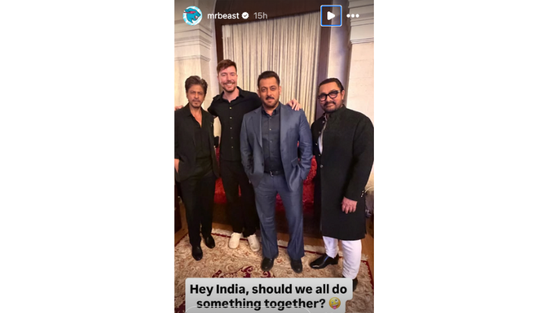 मिस्टर बीस्ट ने तीनों खानों के साथ तस्वीर शेयर करते हुए कैप्शन में लिखा, हे इंडिया, क्या हम सब मिलकर कुछ करें? अब मिस्टर की पोस्ट को देखने के बाद लोग तरह तरह के कयास लगा रहे हैं, उनके इस कैप्शन ने सोशल मीडिया पर सनसनी मचा दी है. अब हर कोई सोच रहा है कि क्या सच में तीनों खान दुनिया के नंबर वन 1 यूट्यूबर मिस्टर बीस्ट के साथ कोई कोलेबोरेशन करने जा रहे हैं.