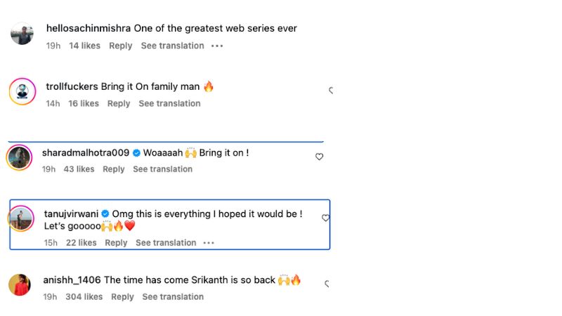 वहीं एक और यूज़र ने लिखा, “Bring it On family man”