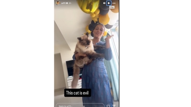 उर्फी ने एक और मजेदार वीडियो इंस्टाग्राम स्टोरी पर पोस्ट किया. इस वीडियो में उनकी पालतू बिल्ली की केयरटेकर नजर आ रही हैं, जो उर्फी को पंजा मारने पर बिल्ली को डांट रही हैं. वीडियो में देखा जा सकता है कि केयरटेकर बिल्ली को डांट रही हैं और हल्के हाथों से उसे मार भी रही हैं. वह उसे समझा रही हैं कि ऐसा व्यवहार ठीक नहीं है. वहीं, उर्फी यह पूरी घटना अपने कैमरे में रिकॉर्ड कर रही हैं और हंसती भी नजर आ रही हैं. इस वीडियो के साथ उर्फी ने कैप्शन लिखा, “दिस कैट इज एविल,' यानी 'यह बिल्ली शैतान है.”