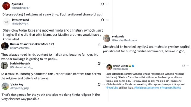 एक यूजर ने लिखा, “टॉमी जेनेसिस, जिनका असली नाम जेनेसिस यास्मीन मोहनराज है, केरल और तमिल पृष्ठभूमि वाली कनाडाई कलाकार हैं. उनका नया गाना हिंदू और ईसाई धर्मों का खुलेआम अपमान करता है. यह रचनात्मकता नहीं, बल्कि अनादर है. आश्चर्य है कि यह वीडियो @YouTube पर अभी भी मौजूद है.”