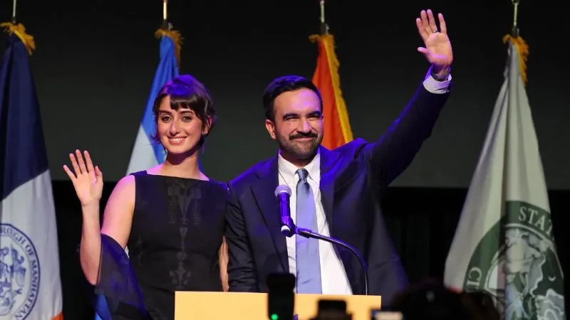 फोटो- मेयर बनने केे बाद पत्नी रामा दुवाजी के साथ जोहरान ममदानी