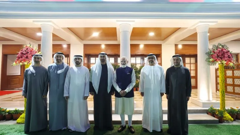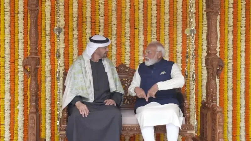 संयुक्त अरब अमीरात (यूएई) के राष्ट्रपति शेख मोहम्मद बिन जायद अल नाहयान का 2 घंटे का आधिकारिक दौरा सफलतापूर्वक संपन्न हो गई. भारत के द्विपक्षीय संबंध और मौजूदा वैश्विक हालात के मद्देनजर को विदेश मंत्रालय ने इसे काफी बड़ा करार दिया है. इस दौरान दोनों देशों के बीच कई अहम दस्तावेजों का आदान-प्रदान हुआ और समझौतों पर हस्ताक्षर भी हुए. दोनों नेताओं का संयुक्त बयान जारी किया गया.