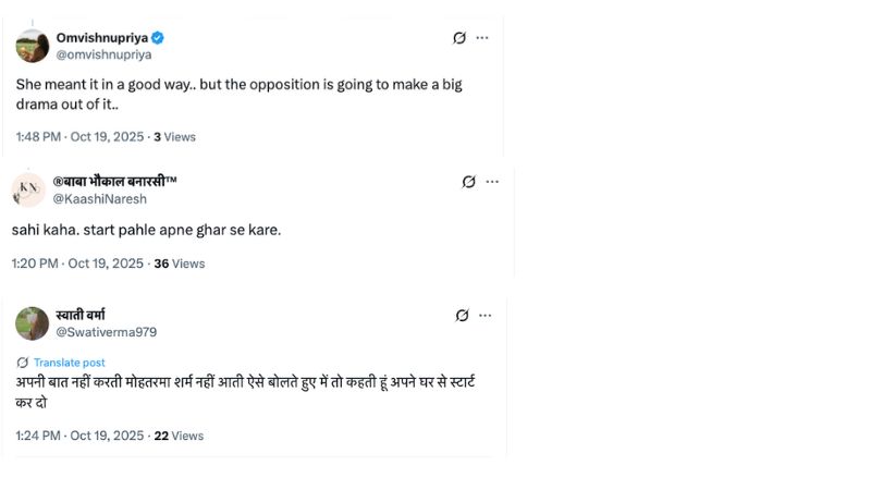 इसके अलावा एक और यूजर ने लिखा, “अपनी बात नहीं करती मोहतरमा शर्म नहीं आती ऐसे बोलते हुए में तो कहती हूं अपने घर से स्टार्ट कर दो.”