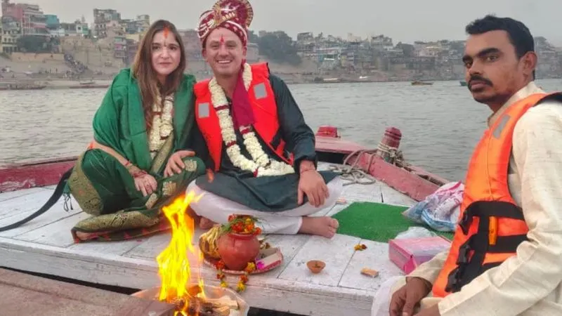 निर्धारित शुभ मुहूर्त में गंगा नदी के बीच एक नाव को सुंदर मंडप की तरह सजाया गया. फूलों की सजावट, दीपक और पारंपरिक वस्त्रों से पूरा वातावरण बिल्कुल भारतीय विवाह जैसा दिखाई दे रहा था. जैसे ही वैदिक मंत्रों का उच्चारण शुरू हुआ, पूरा माहौल भक्तिमय और शांत हो गया। गंगा की लहरों के बीच यह विवाह किसी सपने जैसा प्रतीत हो रहा था.