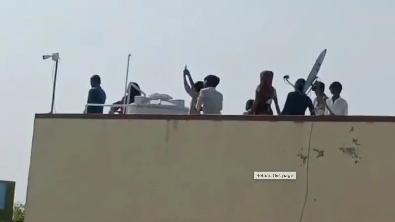 छत से दूसरे गुट पर पथराव करते कुछ लोग, महिलाएं और बच्चे भी शामिल (Photo- Screengrab/viral Video)