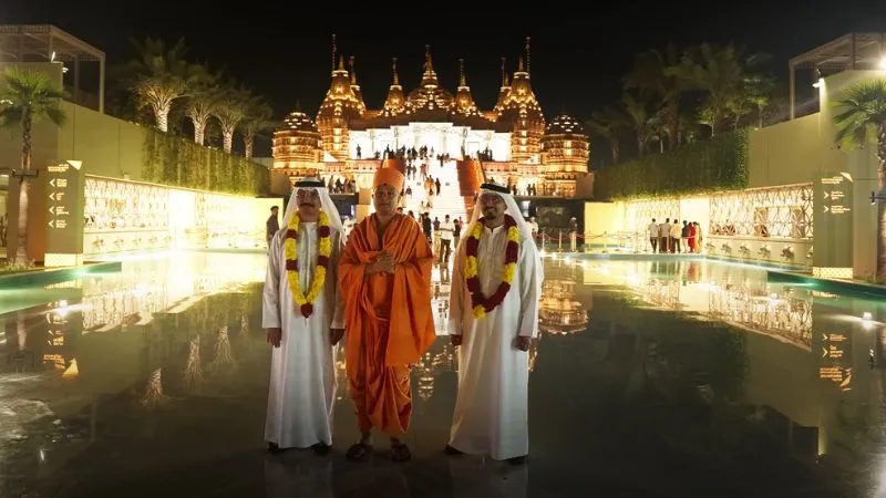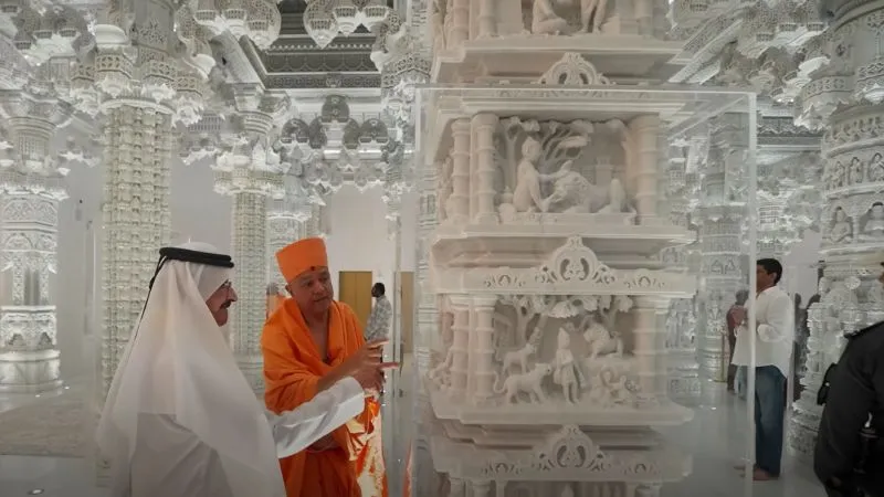 अबू धाबी का BAPS हिंदू मंदिर 14 फरवरी 2024 को उद्घाटित हुआ. यह यूएई का पहला पारंपरिक हिंदू मंदिर है, जो 27 एकड़ में फैला है. इसके निर्माण में राजस्थान के बलुआ पत्थर का उपयोग किया गया है. यह न सिर्फ धार्मिक स्थल है, बल्कि संस्कृतियों को जोड़ने वाला पुल और सहिष्णुता की जीती-जागती मिसाल है.