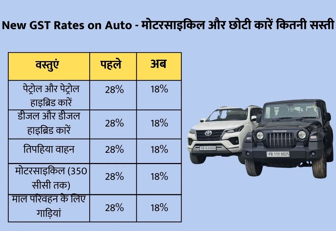 New GST Rates on Auto: मोटरसाइकिल और छोटी कारें कितनी सस्ती