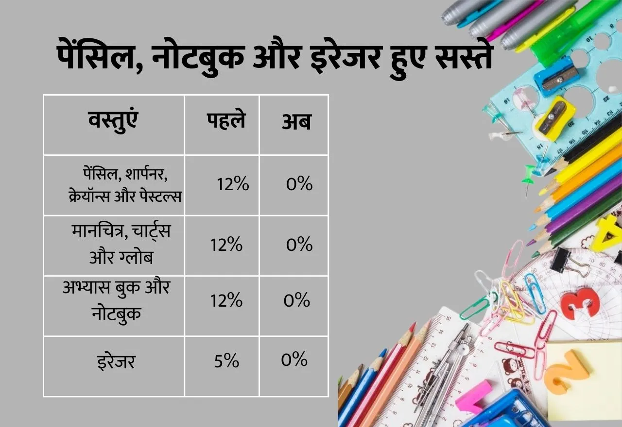 New GST Rates on Education: पेंसिल, नोटबुक और इरेजर हुए सस्ते