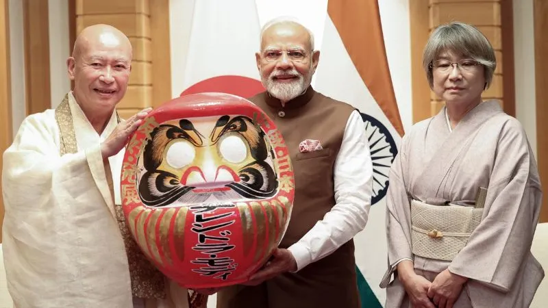 प्रधानमंत्री नरेंद्र मोदी दो दिन के जापान दौरे पर हैं. राजधानी टोक्यो में कदम रखते ही PM मोदी का ज़ोरदार स्वागत हुआ. PM के स्वागत में कहीं जापानी महिलाओं ने भरतनाट्यम किया तो कहीं गायत्री मंत्रों और भजनों की धुन सुनाई दी. इस दौरान PM मोदी को जापान में ऐसा तोहफ़ा भेंट किया गया जो दोनों देशों के बीच आध्यात्मिक और ऐतिहासिक कड़ी का प्रतीक बन गया. ये ख़ास तोहफा है दारूमा डॉल. ये गुड़िया जापान की संस्कृति और परंपरा का अहम हिस्सा तो है ही साथ-साथ इसका कनेक्शन भारत से भी है. क्या है दारुमा डॉल का इतिहास और कहानी चलिए जानते हैं.