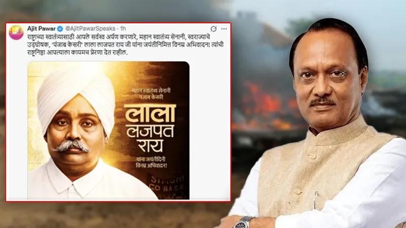 डिप्टी सीएम अजित पवार ने बुधवार को 8 बजकर 57 मिनट पर एक्स पर एक पोस्ट किया था. इसमें उन्होंने लिखा था, 'महान स्वतंत्रता सेनानी, स्वराज्य के प्रचारक, 'पंजाब केसरी' लाला लाजपत राय जी को उनकी जयंती पर विनम्र श्रद्धांजलि, जिन्होंने देश की आजादी के लिए अपना सब कुछ कुर्बान कर दिया! उनकी देशभक्ति हमें हमेशा प्रेरित करती रहेगी.'