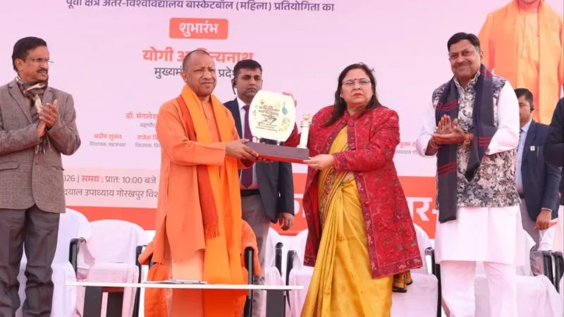 UP: सीएम योगी शुक्रवार को दीनदयाल उपाध्याय गोरखपुर विश्वविद्यालय में पूर्वी क्षेत्र अंतर विश्वविद्यालय बास्केटबॉल (महिला) प्रतियोगिता के औपचारिक उद्घाटन समारोह को बतौर मुख्य अतिथि संबोधित कर रहे थे.