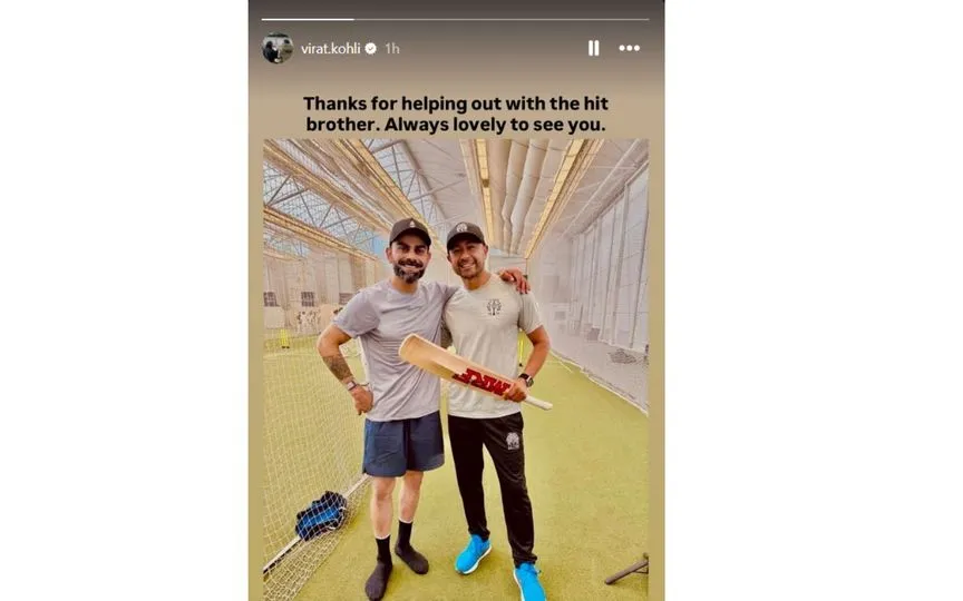 विराट कोहली ने अपने इंस्टाग्राम पर एक स्टोरी पोस्ट करते हुए लिखा, "हिट में मदद के लिए शुक्रिया, भाई. आपको देखकर हमेशा अच्छा लगता है." प्रैक्टिस सेशन के दौरान विराट ने अमीन के साथ अपनी एक तस्वीर भी शेयर की. इसके बाद अमीन ने अपने अकाउंट पर स्टोरी दोबारा शेयर करते हुए लिखा, "भाई, आपको देखकर अच्छा लगा! जल्द ही मिलते हैं."