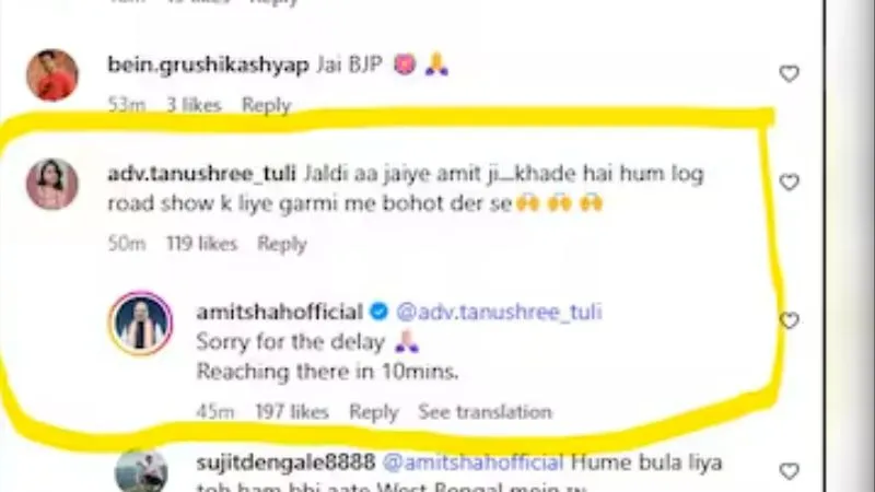 इसी भीड़ में मौजूद एडवोकेट तनुश्री सरकार ने इंतजार करते-करते अमित शाह के इंस्टाग्राम पोस्ट पर एक कमेंट कर दिया. उन्होंने लिखा कि “जल्दी आ जाइये अमित जी, हम लोग काफी देर से गर्मी में खड़े हैं.” आमतौर पर ऐसे कमेंट्स पर कोई जवाब नहीं आता, लेकिन इस बार मामला थोड़ा अलग हो गया.