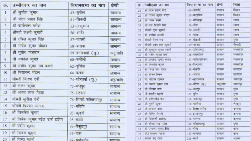 बीजेपी और जेडीयू ने अपनी सभी सीटों पर चुनाव लड़ने का ऐलान कर दिया है. वहीं अब इस कड़ी में बहुजन समाज पार्टी ने भी बिहार की सभी 243 सीटों पर चुनाव लड़ने का ऐलान कर दिया है, इसके साथ ही 90 उम्मीदवारों की सूची भी जारी कर दी गई है. बता दें कि पार्टी की तरफ से उम्मीदवारों की दो सूचियां जारी की गई है. पहली सूची में 42 और दूसरी सूची में 48 नाम शामिल हैं.