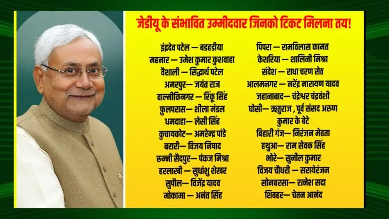 बिहार विधानसभा चुनाव को लेकर उम्मीदवारों के नाम फाइनल करने में JDU सबसे आगे, आ गई संभावित कैंडिडेट्स की लिस्ट!