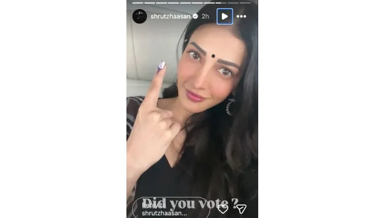 उनके आने पर मतदान केंद्र के बाहर भारी भीड़ जमा हो गई. श्रुति हासन ने इंस्टाग्राम पर पोस्ट करते हुए लिखा, “मैंने वोट कर दिया, आपने किया?” इस पोस्ट के साथ उन्होंने मतदान की तस्वीर भी साझा की. पिता-पुत्री की जोड़ी ने सुबह ही मतदान केंद्र पहुंचकर वोट डाला और लोकतंत्र में अपनी भागीदारी निभाई. कमल हासन अपनी पार्टी मक्कल नीति मैयम (एमएनएम) के साथ इस बार चुनाव नहीं लड़ रही है लेकिन उन्होंने डीएमके गठबंधन को समर्थन दिया है.