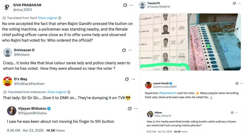 वहीं एक और यूजर ने लिखा, “किसी ने भी इस तथ्य को स्वीकार नहीं किया कि जब रजनीकांत ने मतदान मशीन का बटन दबाया, तो एक पुलिसकर्मी पास ही खड़ा था, और महिला मुख्य मतदान अधिकारी मदद करने के बहाने पास आईं और देखा कि रजनी ने किसे वोट दिया है. उस अधिकारी को किसने आदेश दिया था?”