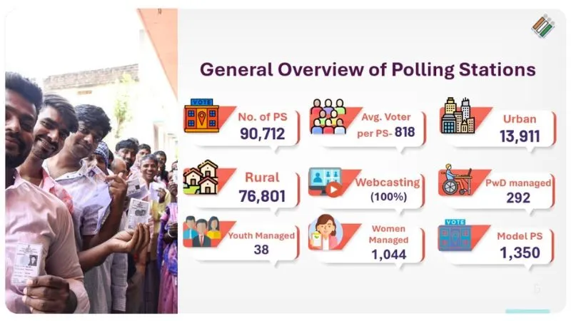चुनाव आयोग द्वारा कुल 90 हजार से अधिक मतदान केंद्र स्थापित किए जाएंगे. सुरक्षा और सुचारू संचालन सुनिश्चित करने के लिए केंद्रीय सशस्त्र पुलिस बलों की अतिरिक्त तैनाती की आवश्यकता होगी.