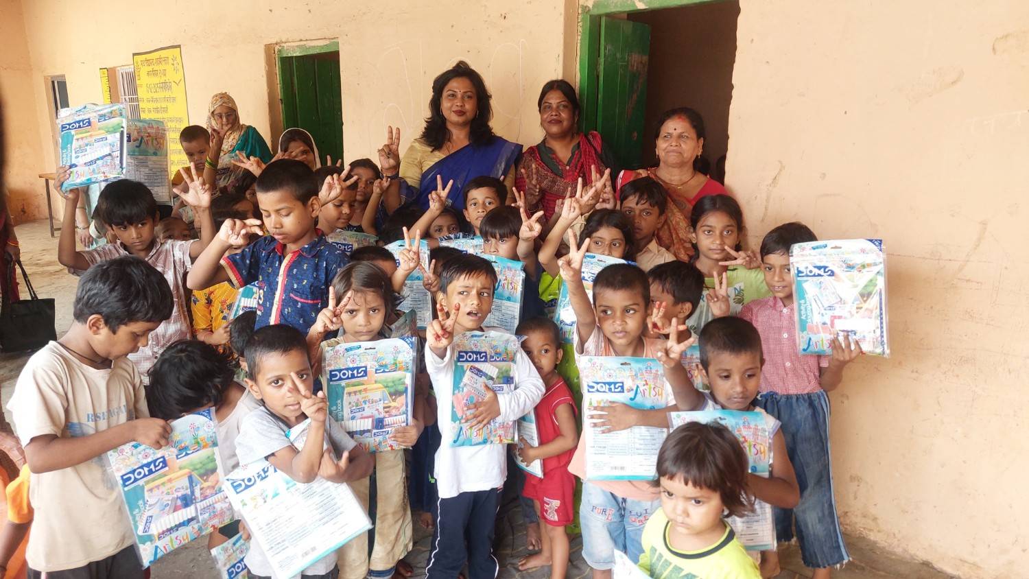 स्टेशनरी के सामान पाकर खुश हो गए बच्चे, साफ दिखी चहचहाहट