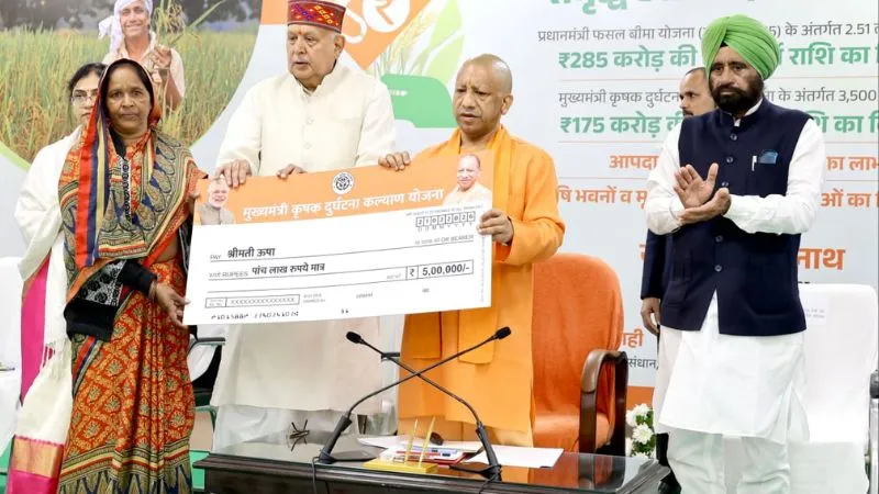 Farmers Yojana: इनमें मुख्यमंत्री ने प्रधानमंत्री फसल बीमा योजना के तहत हरदोई के गोकर्ण को 2.11 लाख रुपये, हमीरपुर से मोहन लाल को 1.72 लाख, एटा की विनीता देवी को 1.17 लाख, जालौन के शिवम राजावत को 1.03 लाख तथा कन्नौज की सुशीला सिंह को 88 हजार की क्षतिपूर्ति का चेक प्रदान किया.