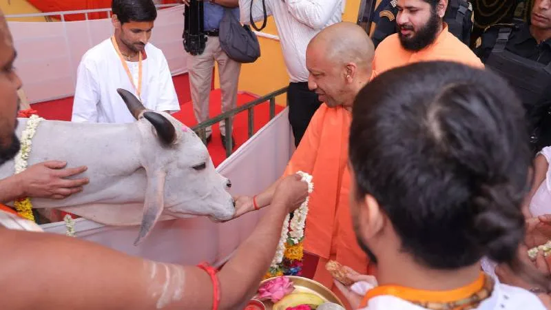 मुख्यमंत्री योगी आदित्यनाथ मंगलवार को संत श्रीमद् जगद्गुरु द्वाराचार्य श्री मलूकदास जी महाराज की 452वीं जयंती पर आयोजित श्रीसीताराम निकुंज अष्टयाम लीला महोत्सव कार्यक्रम में वृंदावन पहुंचे. श्रीमलूकपीठ आश्रम में मुख्यमंत्री ने दर्शन-पूजन किया, फिर गोपूजन कर गायों को गुड़ खिलाया.