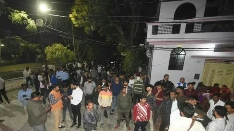 वारदात के बाद मानवेंद्र सिंह के घर के बाहर जमा लोग