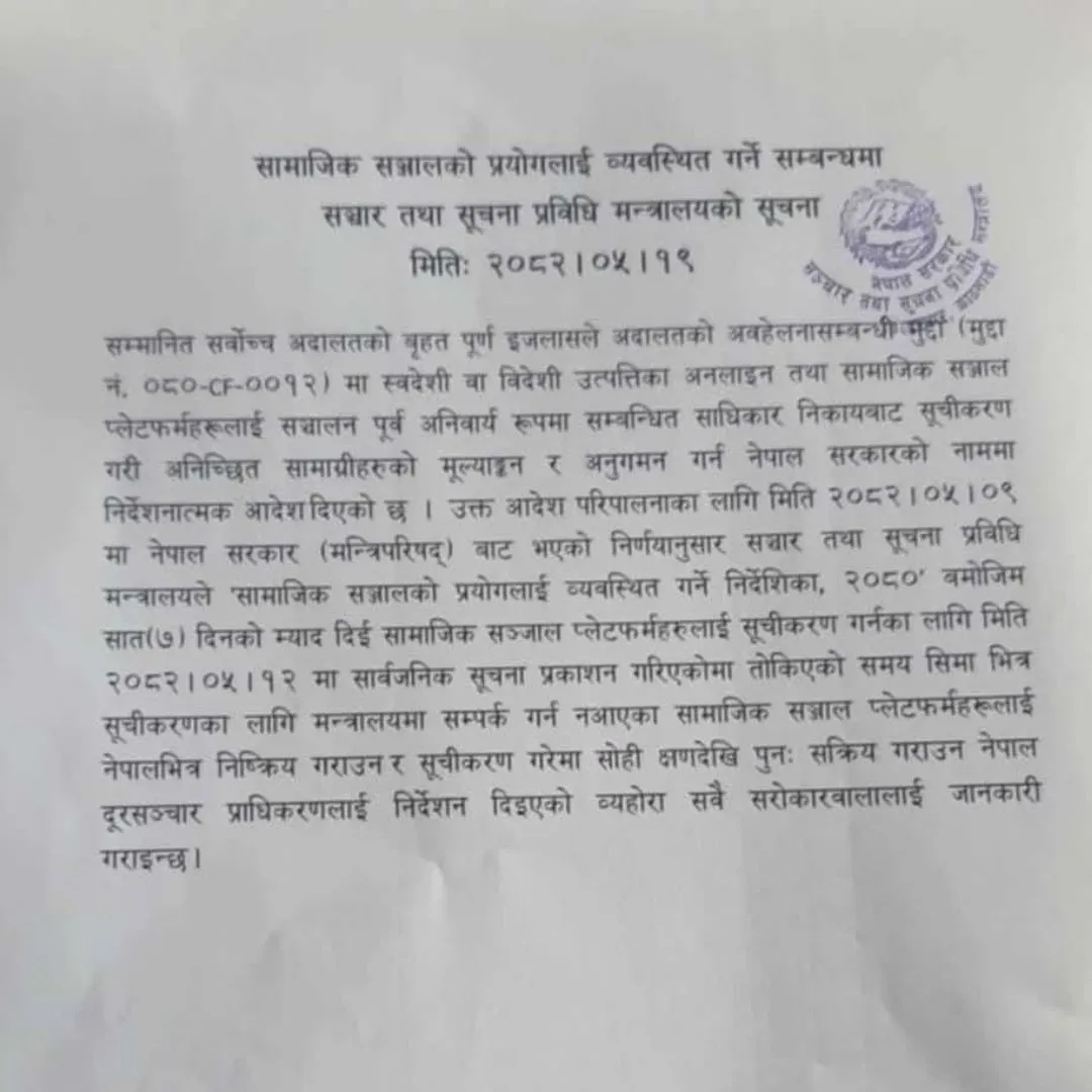 नेपाल सरकार का कहना है कि सोशल मीडिया प्लेटफॉर्म्स पर फेक न्यूज, अफवाहें, आपत्तिजनक कंटेंट और कानून तोड़ने वाली चीजें तेजी से फैल रही थीं. इन पर कोई कंट्रोल नहीं था क्योंकि कंपनियां नेपाल में रजिस्टर्ड नहीं थीं. सरकार चाहती है कि अगर कोई गलत कंटेंट पोस्ट हो, तो उस पर तुरंत कार्रवाई हो सके.
