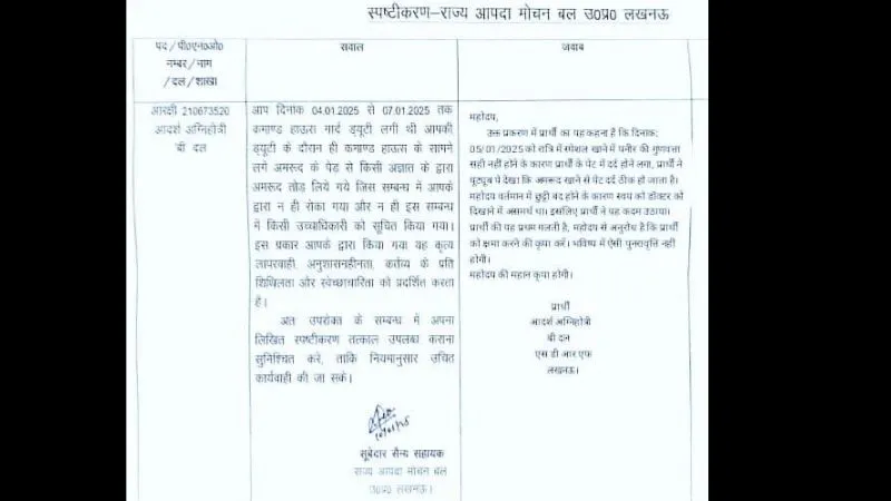 बाढ़, भूकंप, लैंडस्लाइड, ऐसी आपदाओं से निपटने वाली SDRF अचानक अपने अमरूद प्रकरण को लेकर चर्चा में आ गई. हुआ ये था कि इस फोर्स के एक सिपाही ने ड्यूटी के बीच अमरूद तोड़कर खा लिया था. ये बात विभाग को इतनी नागवार गुजरी की सिपाही से जवाब मांग लिया गया. बकायदा उन्हें नोटिस जारी कर जवाब मांग लिया गया. विभाग ने कहा, आपने लापरवाही की है, अनुशासन तोड़ा है. जवाब तो देना पड़ेगा.