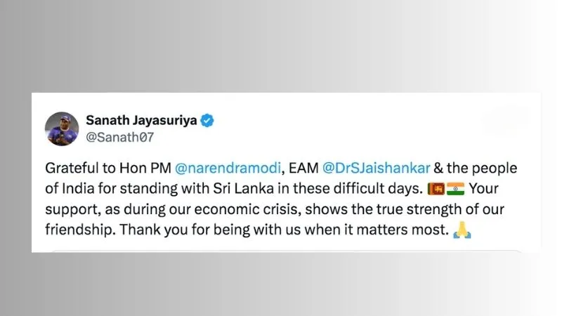 इसी तस्वीर पर प्रतिक्रिया देते हुए जयसूर्या ने पीएम मोदी, विदेश मंत्री एस जयशंकर और भारत की जनता का आभार व्यक्त करते हुए लिखा: माननीय प्रधानमंत्री नरेंद्र मोदी, विदेश मंत्री एस जयशंकर और भारत की जनता का इन कठिन दिनों में श्रीलंका के साथ खड़े रहने के लिए आभार. आर्थिक संकट के दौरान आपका समर्थन हमारी दोस्ती की असली ताकत को दर्शाता है. इस मुश्किल घड़ी में हमारे साथ खड़े रहने के लिए धन्यवाद.
