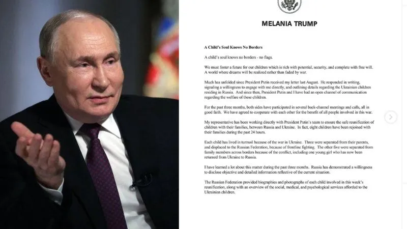 मेलानिया और पुतिन के बीच इस सीधी बातचीत का नतीजा ये निकला कि, 24 घंटों में युद्ध प्रभावित आठ बच्चों को उनके परिवारों से फिर मिलाया गया है. मेलानिया ट्रंप का कहना है कि, हर बच्चा उसी प्यार और सुरक्षा का सपना देखता है जो किसी भी इंसान का हक होता है. इन बच्चों ने जंग की वजह से वो सब खो दिया जो उनके बचपन का हिस्सा था. मेलानिया ने इस कोशिश को गैर राजनीतिक और मानवीय पहल बताया.